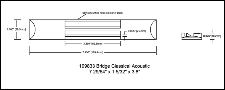 PLEASE NOTE: There are a number of different classical bridges, string mounts and sizes vary, please refer to drawing and description details to determine usage.