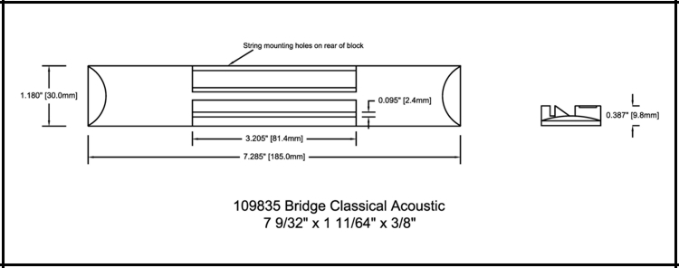 PLEASE NOTE: There are a number of different classical bridges, string mounts and sizes vary, please refer to drawing and description details to determine usage.