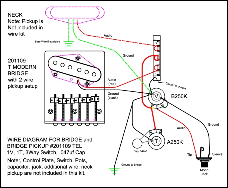Includes Single Coil, T bridge pickup (two wire) 6.5K output. Alnico magnet. Brass back plate.