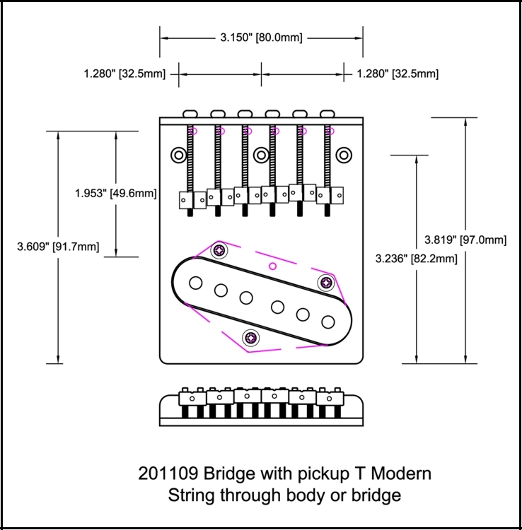 Includes Single Coil, T bridge pickup (two wire) 6.5K output. Alnico magnet. Brass back plate.