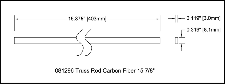 Light weight carbon fiber rod. Much stronger than steel for the same size and weight. Use in combination with a metal adjustable truss rod to increase strength and to help prevent neck twist.