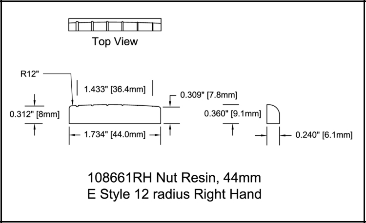 Guitar Nut Right Hand 44mm