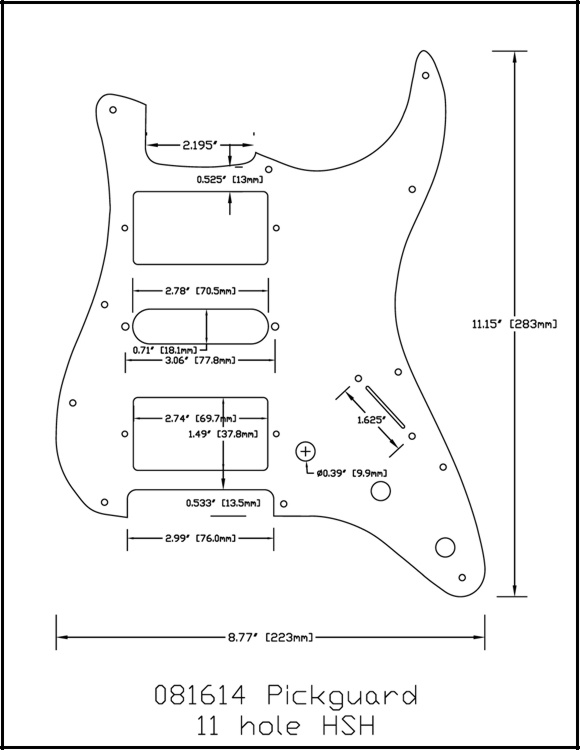 1 Ply plastic pickguard for HSH humbucker and single coil applications.
