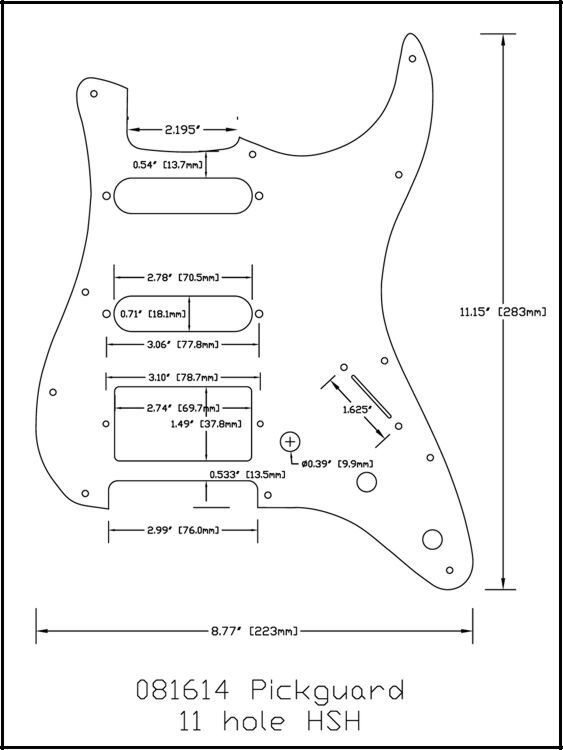 1 Ply plastic pickguard for SSH humbucker and two single coil applications.