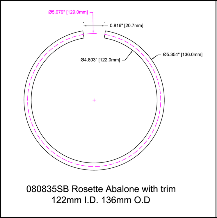 Ring (rosette) is constructed with abalone inlay, maple and black fiber trim.