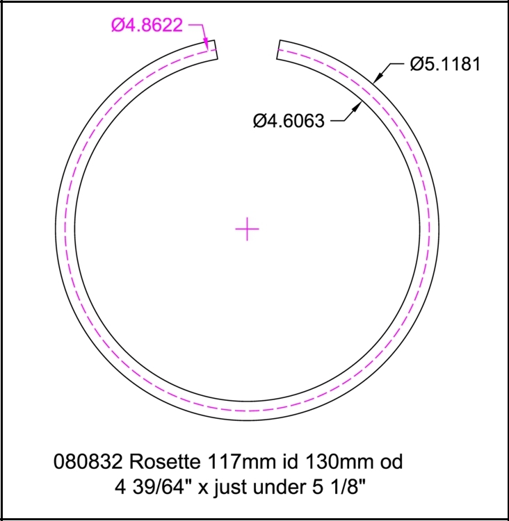 4.6063" id (117mm or just over 4 19/32"), 5.1181"od (130mm or just under 5 1/8")