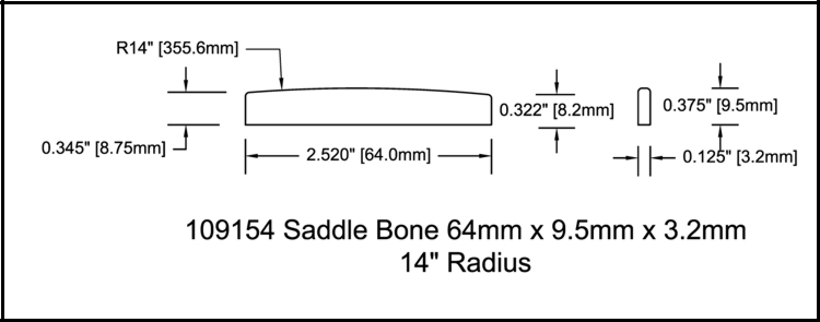 Acoustic Guitar Saddle 64mm 14 radius