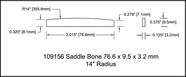 Acoustic Guitar Saddle 76.6mm 14 radius
