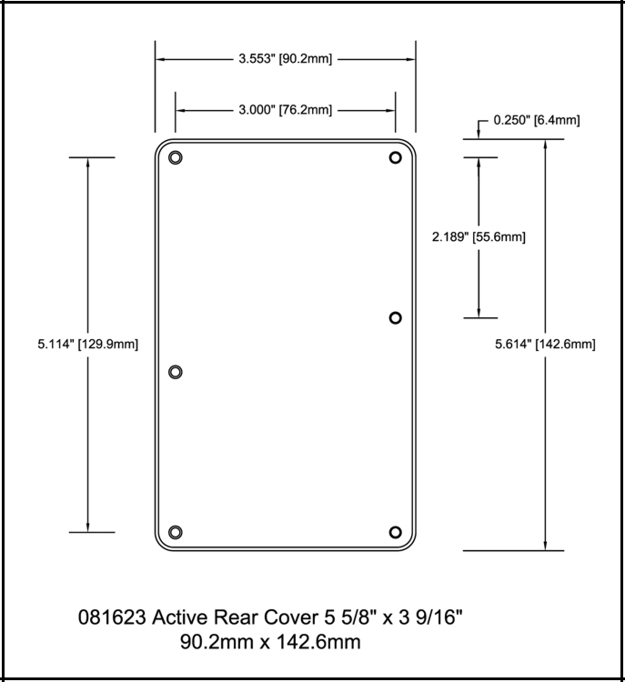 Overall size 3.553" (approximately 3 9/16" or 90.2mm) x 5.614" (approximately 5 5/8" or 142.6mm)